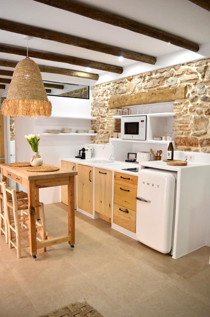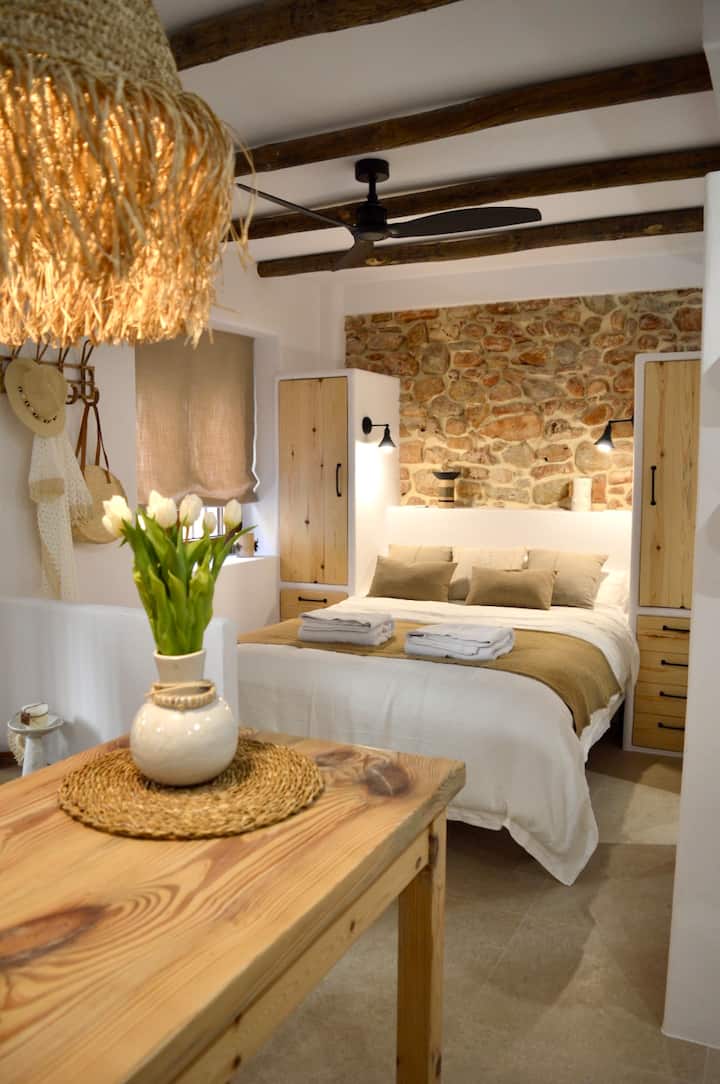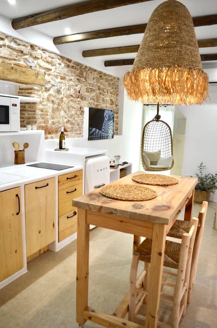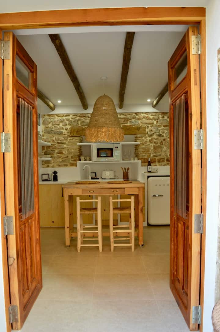 El apartamento es perfecto para 2 personas. La estancia habitable se encuentra en planta baja y se accede desde la calle. Cuenta con una habitación con cama de 150cm, salón comedor con balcón, cocina totalmente equipada y cuarto de baño con ducha, todo ello integrado en un moderno espacio diáfano y cálido que transmite paz, alegría y serenidad.